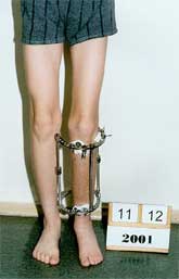 2.Patient after the lengthening phase in Ilizarov-Veklich's fixator. |