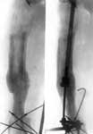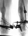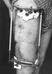 2.Удаление нежизнеспособных тканей нижней трети бедра с одновременным удлинением бедра аппаратом Илизарова.
